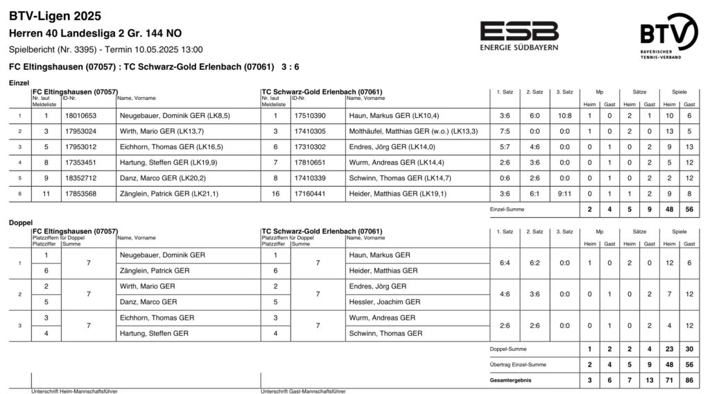 FC Eltingshausen (Herren 40) 3 - 6 TC Schwarz-Gold Erlenbach